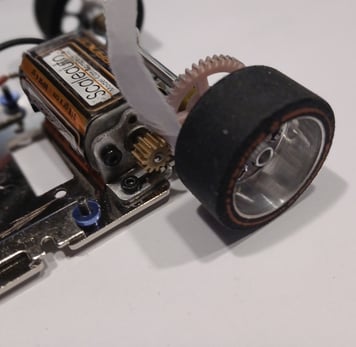 mit einem kleinen Tropfen Sekundenkleber wird das Ritzel auf die Motorwelle gepresst.