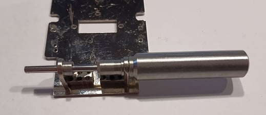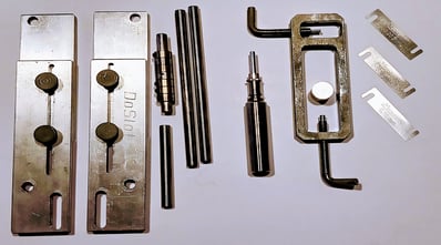 Die Ausrichtung der Achsböcke erfolgt mithilfe des DAG-Tools. Dies kann entweder direkt mit dem Werkzeug oder durch vorsichtiges Nachjustieren mit einer Zange geschehen. Im optimalen Fall sollte die Achse des DAG-Tools beim Kippen ohne Widerstand durch die Achsböcke gleiten.