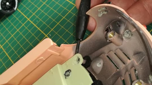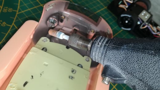 Nun die Kunststoff-Schweißpunkte mit einem Dremel vorsichtig auftrennen.
