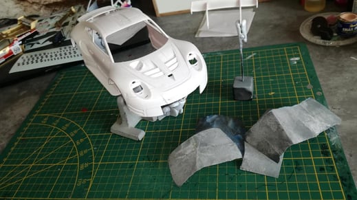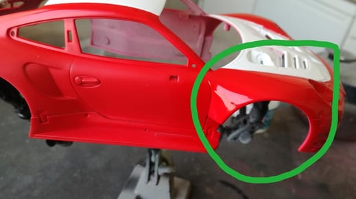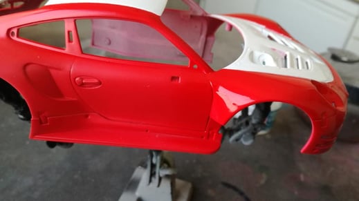 Nun lasse ich alles 24 Stunden durchtrocknen, und dann ist der Porsche bereit für den Arbeits-Klarlack.