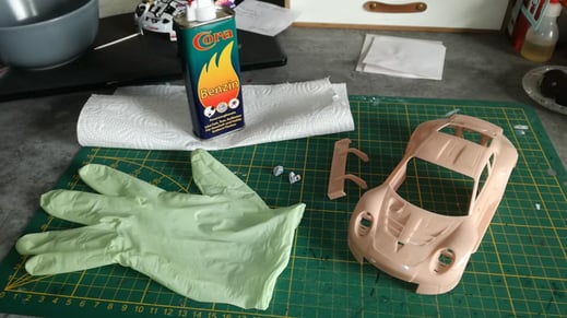 Ab jetzt dürfen die zu lackierenden Teile nur noch mit latexfreien Einmalhandschuhen berührt werden, um Fettspuren und Fingerabdrücke zu verhindern.
