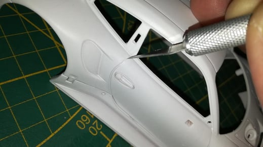 Für das Entfernen der kleinen Klebepunkte an Spiegeln, Scheinwerfern, Rücklichtern und Flaps sollte ein Cuttermesser verwendet werden.