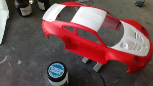 Der Lack ist drauf und der erste Klarlack ist auch.