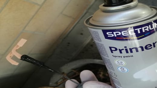 Ab jetzt besser Handschuhe anziehen, die Dose gut schütteln und erstmal ein paar Testsprüher machen. Kurze, gleichmäßige Sprühstöße aus etwa der gleichen Entfernung, so vermeidet man