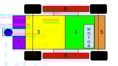 Zusätzliches Gewicht im mittleren bis hinteren Bereich des Chassis verbessert das Fahrverhalten, erhöht den Grip auf den Hinterrädern und ist ein geeigneter Platz, um das Chassis bei